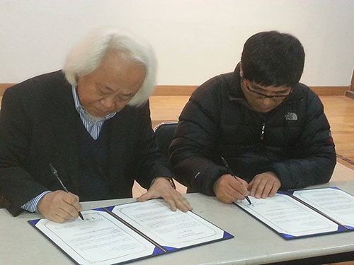 본 바실련의 오진국 회장과 <두드림> 단장인 양한모 교수가 업무협약을