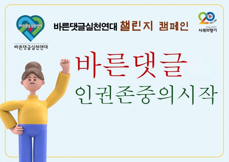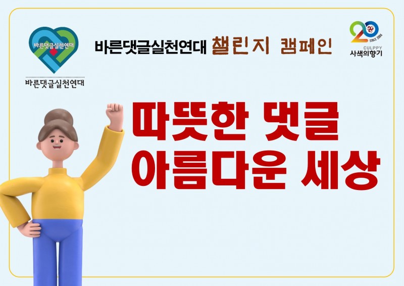 바른댓글실천연대 릴레이 캠페인 이미지 페이지 정보 작성자 오경숙 작성일24-03-09 23:24 조회1,918회 댓글0건 이전글 다음글 목록 본문 바른댓글실천연대 릴레이 캠페인 이미지입니다. 댓글목록 등록된 댓글이 없습니다. 이전글 다음글 목록