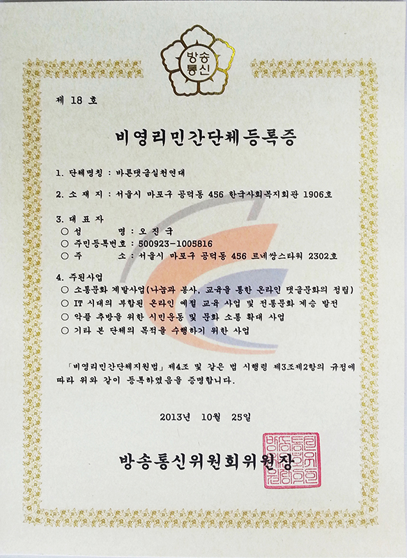 행정기관중 방송통신위원회가 등록한 10개 단체 중 하나인 명실상부한 민간단체로,