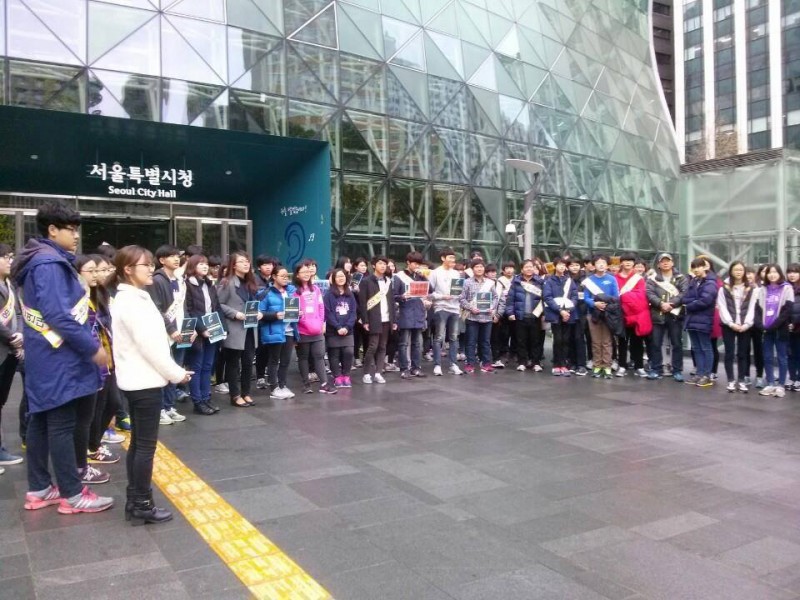악플추방 선플확산운동에 참여한 학생들이 서울시청 주위를 돌며