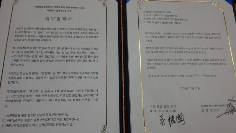 업무협약식 페이지 정보 작성자 엔젤 작성일15-02-02 03:30 조회871회 댓글0건 이전글 다음글 목록 본문 바른댓글실천연대와 대학생청년자원봉사단 두드림과의 업무협약식으로 건전한 댓글문화를 선도하는데 큰 주춧돌이 될 것이다 댓글목록 등록된 댓글이 없습니다. 이전글 다음글 목록