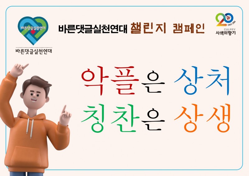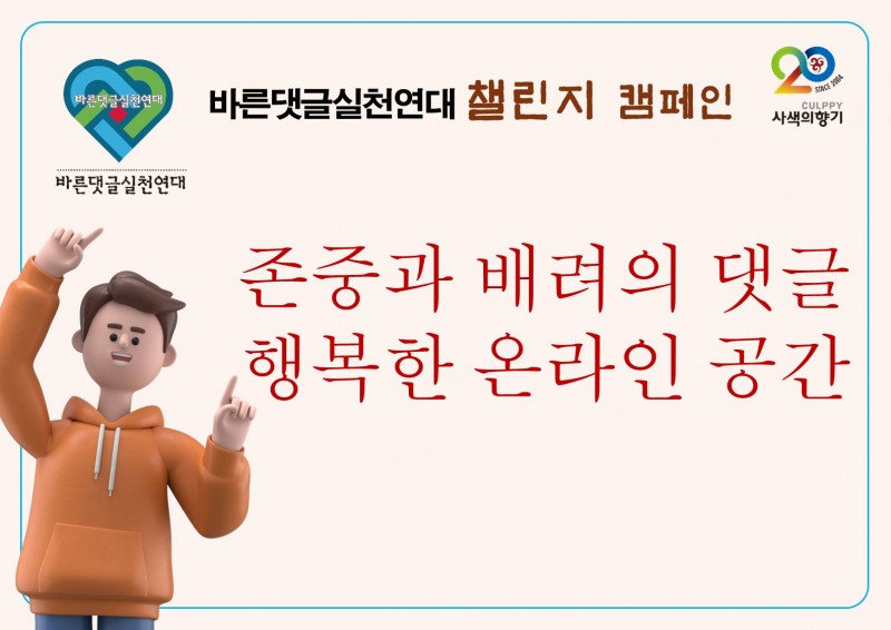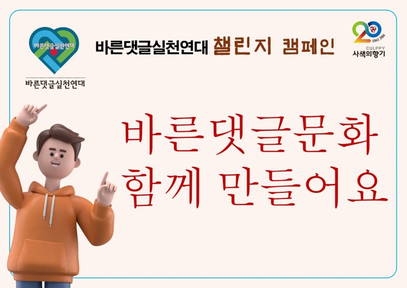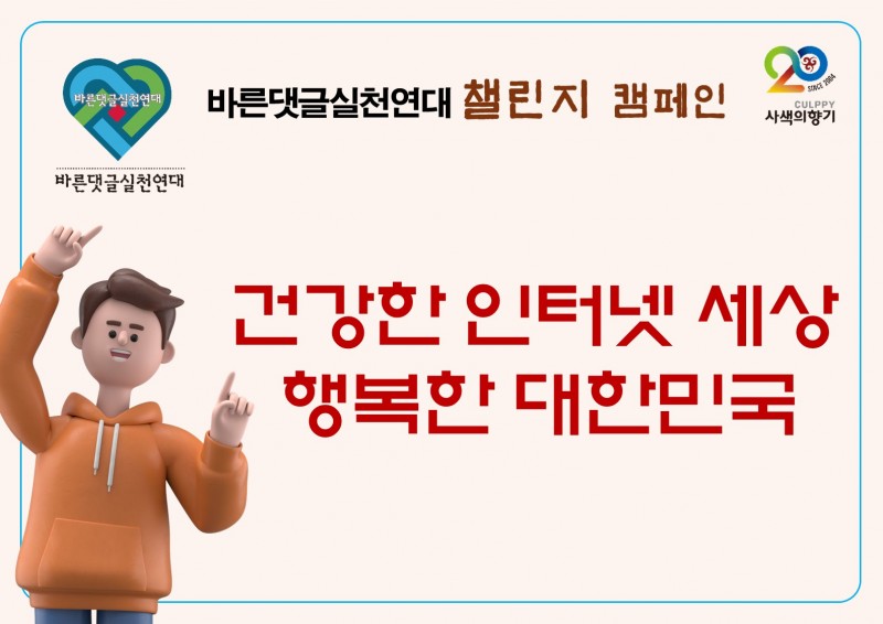 바른댓글실천연대 릴레이 캠페인 이미지 페이지 정보 작성자 오경숙 작성일24-03-09 23:24 조회1,917회 댓글0건 이전글 다음글 목록 본문 바른댓글실천연대 릴레이 캠페인 이미지입니다. 댓글목록 등록된 댓글이 없습니다. 이전글 다음글 목록